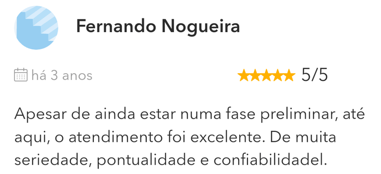 O feedback de nossos clientes demonstrando a satisfação de ter nos contratado é o que nos impulsiona a sempre a fazer um trabalho de excelência.